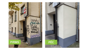 Projekta ietvaros veikta arī ēkas fasādes atjaunošana, uzlabojot nama vizuālo tēlu un nodrošinot papildu aizsardzību pret ārējās vides ietekmi.